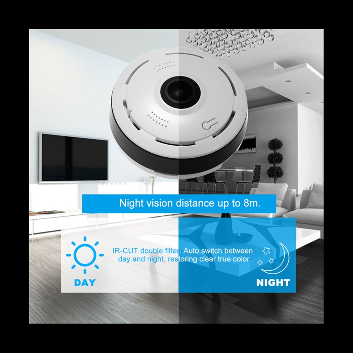 Protege tu hogar o negocio con esta cámara CCTV 360° panorámica, diseñada para ofrecerte una visión completa sin puntos ciegos y control total desde tu celular.